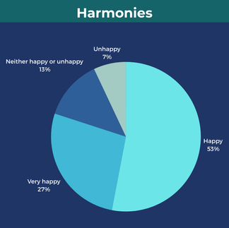 Thank you to everyone who took the time to fill in our quick pulse survey. The good news is that 100% of responders felt that they had enough opportunity to input their ideas into our song choices. We also asked you how happy you are with the new songs we've been singing, the harmonies and the range of song types and genres: